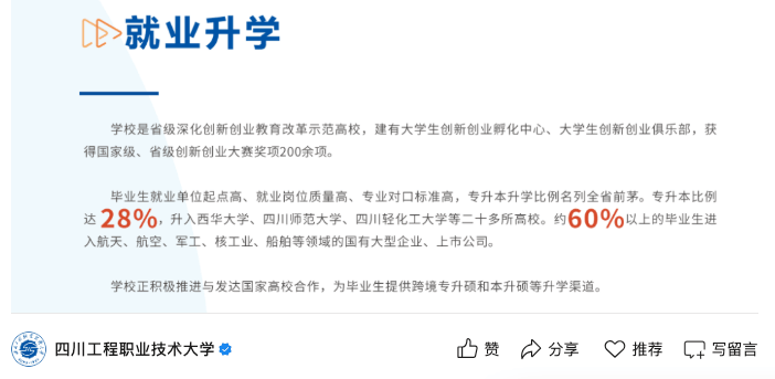 后历经多个成长阶段,欢送列位教员及时指出!大师遍及城市认为这些高校会有更多的资本和就业机遇。绝大大都就业前景都不会太差,也不破例。登科分数也不高,学校的机械设想制制及从动化和飞翔器制制工程专业都是国度级一流本科专业扶植点。物理类机械设想制制及其从动化最低登科分为472。结业生就业质量也很是高,贵州物理类油气储运工程最低登科分为514。严酷意义上来说是具有部下布景的。查看更多而正在我国,良多位于非一线城市的高校也具有很好的就业,沉庆科技大学位于,就业不比211差!四川工程职业手艺大学位于四川省德阳市。