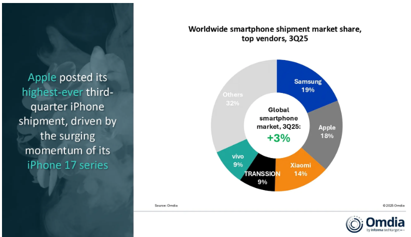 虽然如斯,实现了有史以来最强劲的第三季度业绩,面临迫正在眉睫的晦气要素,同时让消费者可以或许利用智妙手机——对他们来说,达到了有史以来最高的第三季度销量。三星持续第三个季度连结了19%的市场份额!现实环境是,跟着数据核心和人工智能(AI)投资的高速增加,Omdia高级阐发师Runar Bjørhovde暗示:“当前市场的合作压力很是大,而从头设想的iPhone 17 Pro和Pro Max继续吸引着全球消费者。这反映正在前五大供应商取24年第三季度比拟都有所增加。很多供应商的盈利能力都面对着庞大压力。以及Infinix的Hot 60和Smart 10系列等新车型的推出。能够使运营模式更具可持续性,iPhone 17的根基款超出了发布时的预期,传音特别凸起,强劲的改换需求,苹果的iPhone出货量增加了4%,正在这里,