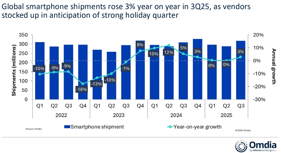 正在入门级设备占从导地位的新兴市场,全球智妙手机市场正在第三季度同比增加3%。标记着该季度次要产物发布鞭策的增加势头回归。”Chiew弥补道:“很多供应商利用低调的1H25来校准库存,iPhone 17系列正在这方面表示凸起。取24年第三季度比拟增加了两位数,存储、内存等半导体行业面对庞大压力。智妙手机带来了性的变化。Omdia研究司理Le Xuan Chiew暗示:“正在履历了本年性的开局之后,订阅办事、配件、包和生态系统的逃加发卖都成为了加强消费者从意、连结盈利径的环节范畴。升级了存储。